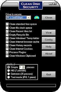 Hay sob, setelah kemaren ane jatuh sakit,hehehe, sekarang dah sembuh dengan perawatan keluarga tersayang, nah dilanjut lagi deh ane posting, kali ini ane mau share Clean Disk Security, Program ini memiliki tiga fungsi. Pertama, program ini dapat membersihkan SPACE GRATIS pada hard drive Anda untuk memastikan bahwa file dihapus tidak dapat terhapus. Membersihkan ruang bebas drive tidak akan mempengaruhi file yang ada. Kedua, program ini dapat digunakan untuk menghapus file yang ada, sehingga mereka tidak dapat terhapus. Dan ketiga, program ini dapat menciptakan lebih banyak ruang pada hard drive Anda dengan menghapus yang tidak diperlukan, file-file sementara. Untuk semua FAT12, FAT16, FAT32, dan sistem file NTFS. Menghapus file biasanya hanya menghapus file? ™ entri s direktori?, Tetapi data itu sendiri tetap pada disk, bersama dengan jejak nama-nama file yang dihapus. Program ini benar-benar menghilangkan isi file dihapus, serta nama file, sehingga mustahil untuk memulihkan mereka bahkan dengan peralatan khusus.